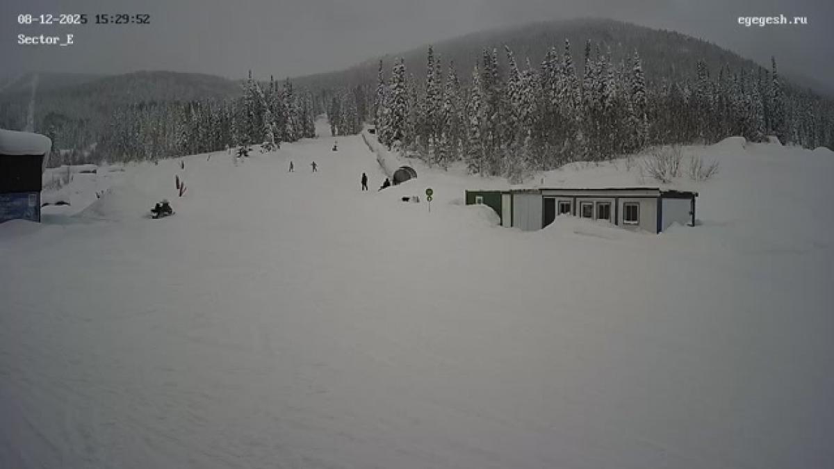Веб-камера показывает пологий склон в секторе Е, где обычно проводятся тренировки начинающих.