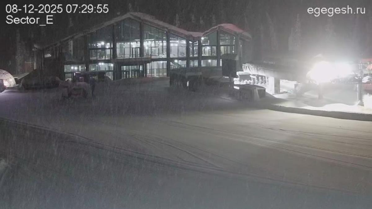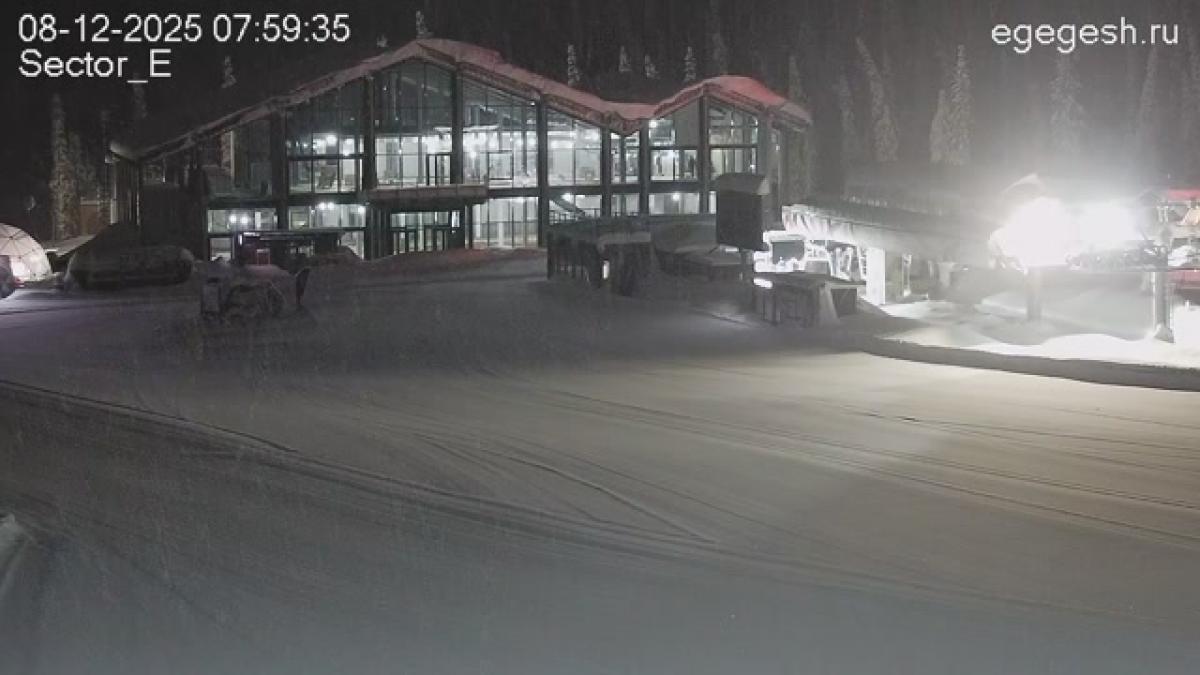 Веб-камера направлена на выкат трассы «Сектор Е». Справа виден одноимённый гондольный подъёмник.