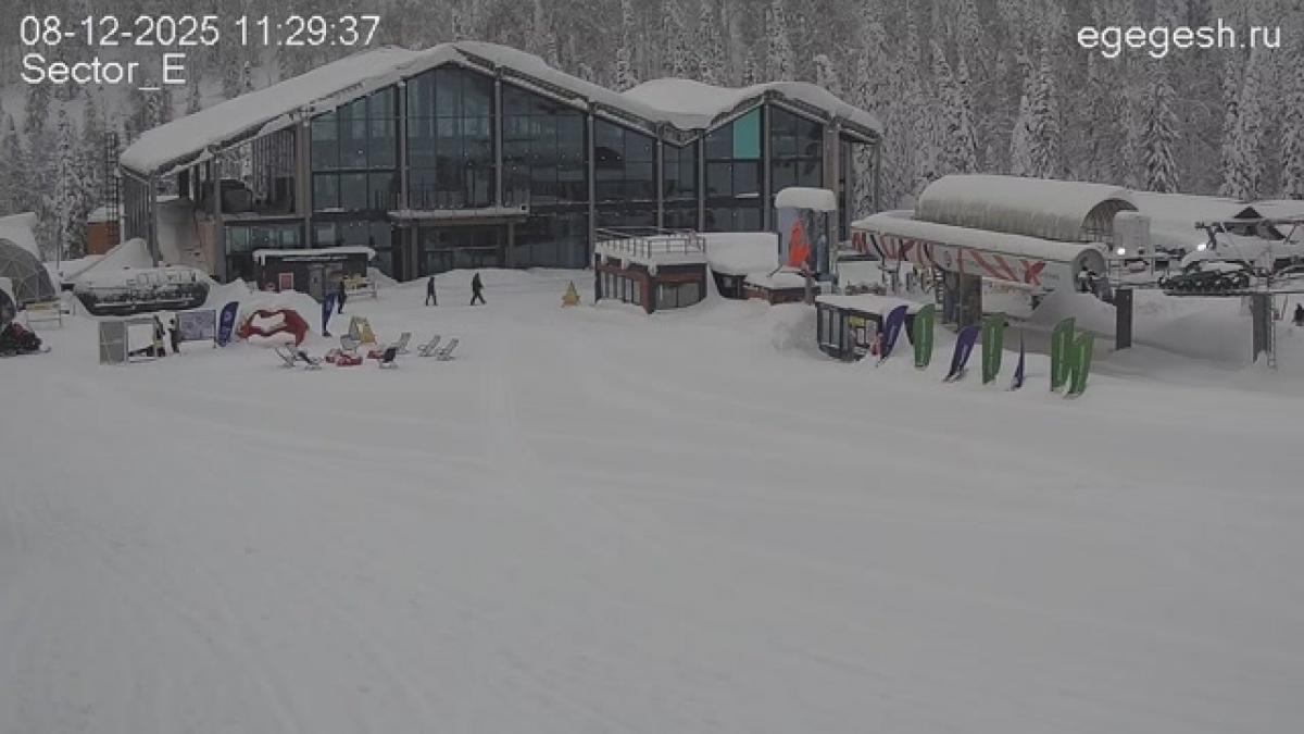 Веб-камера направлена на выкат трассы «Сектор Е». Справа виден одноимённый гондольный подъёмник.