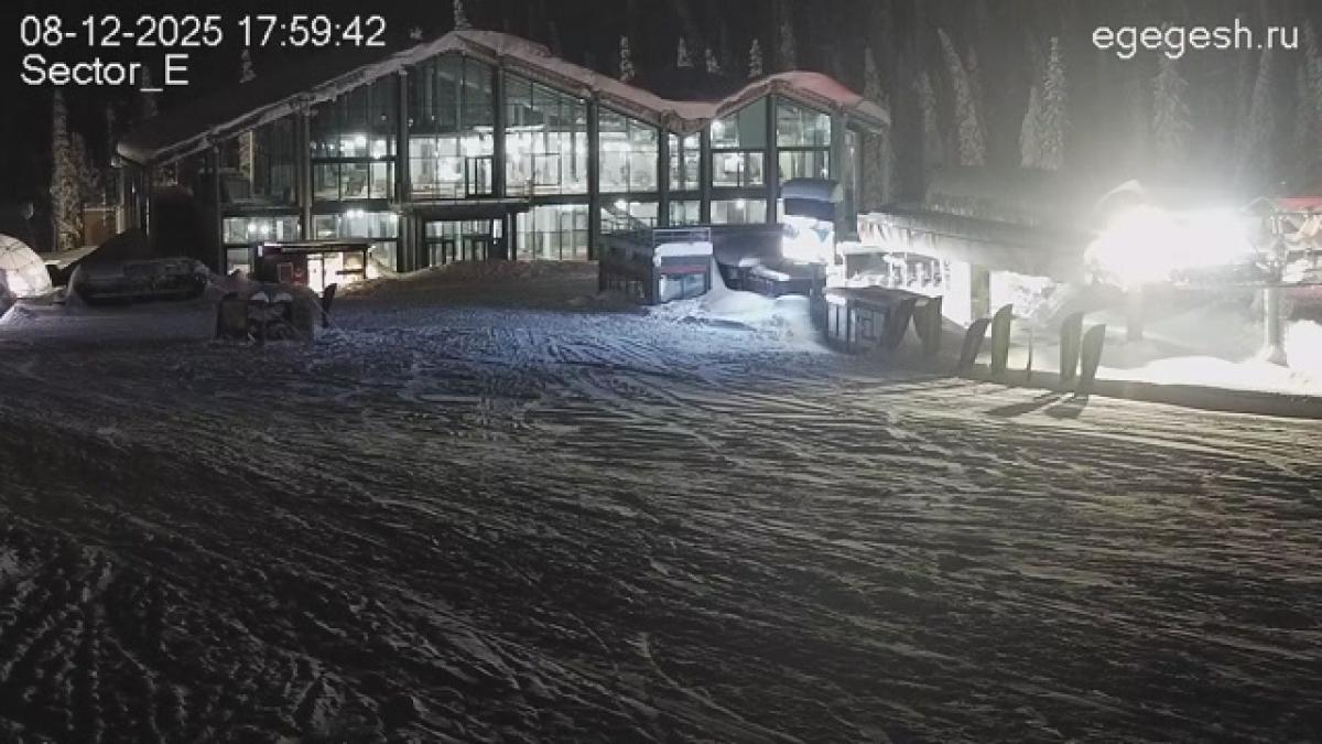 Веб-камера направлена на выкат трассы «Сектор Е». Справа виден одноимённый гондольный подъёмник.