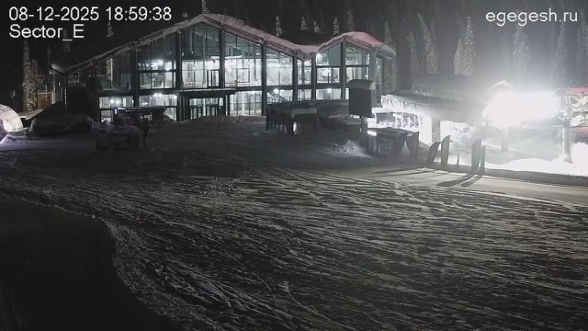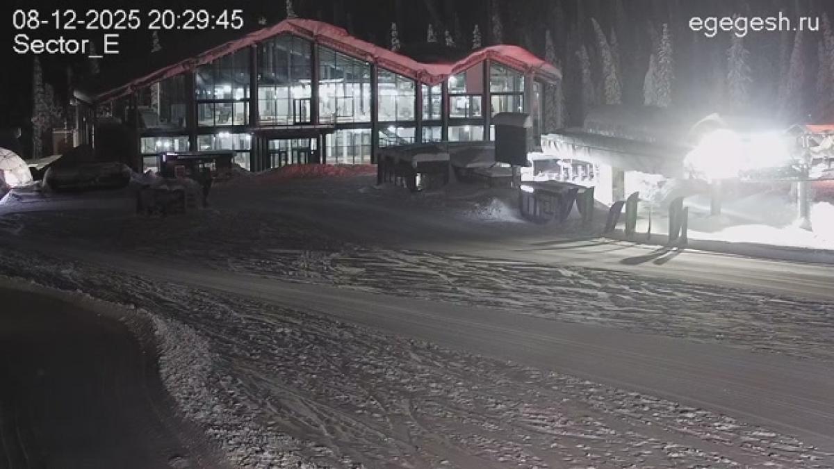 Веб-камера направлена на выкат трассы «Сектор Е». Справа виден одноимённый гондольный подъёмник.