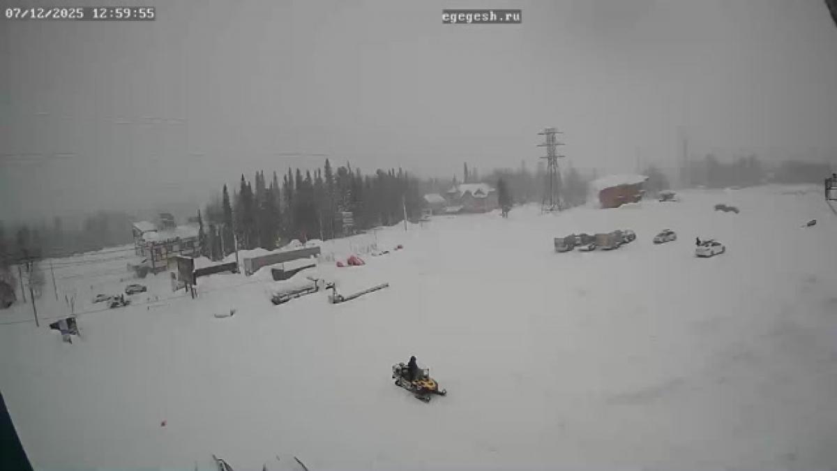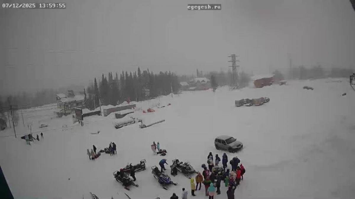 <Камера направлена на парковку в секторе F. Здесь находятся нижние станции канатной дороги Sky Way и нижнего бугеля Sky Way.