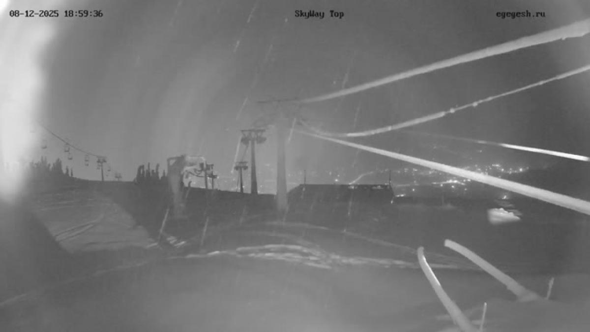 Скриншот с веб-камеры Малка. SkyWay. Верхняя станция 08.12.2025 19:00:04
