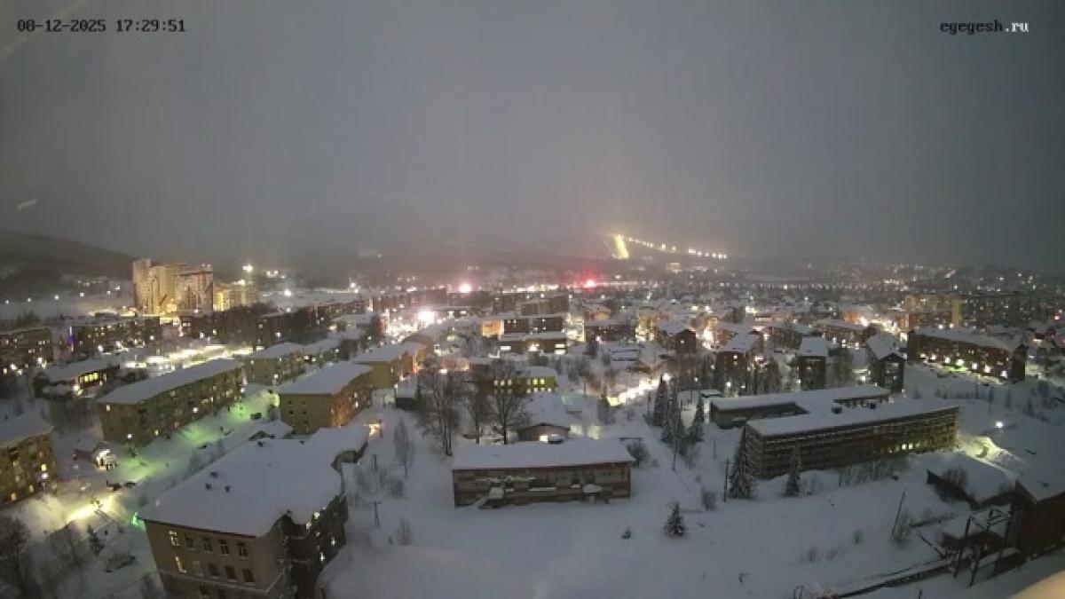 Скриншот с веб-камеры Wow Aparts. Вид на Шерегеш 08.12.2025 17:00:05